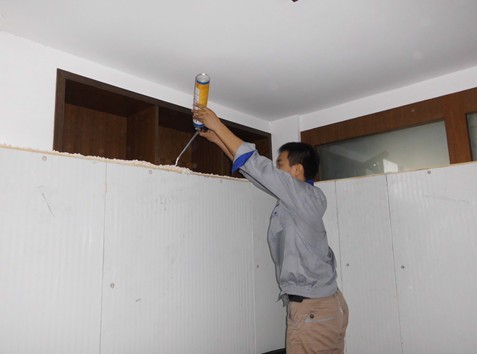 在拼裝每一塊冷庫板,都不可忽視細(xì)節(jié),必須打上發(fā)泡劑;